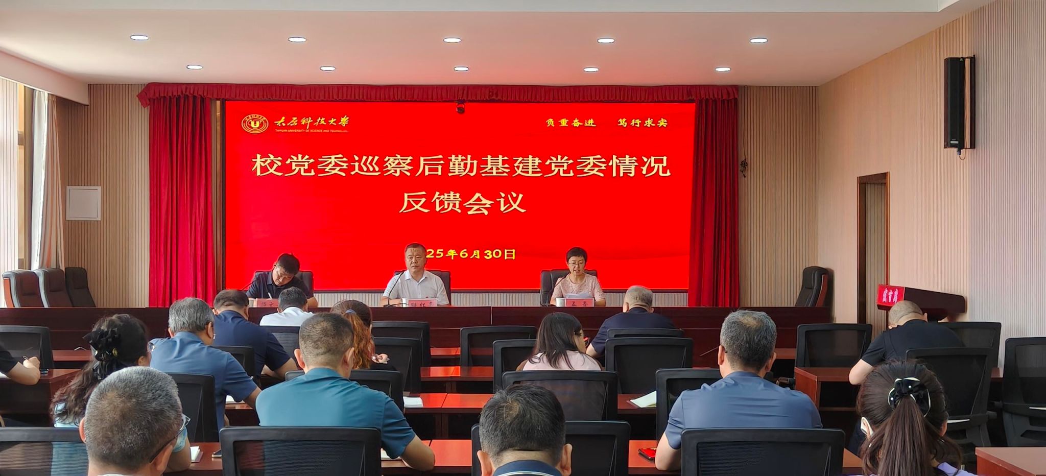 近日,学校第九届党委第三轮校内巡察工作组先后向后勤基建党委、应用科学学院党委、法学院(人文社科学院)党委、化学工程与技术学院党委、外国语学院党委5个院级党组织反馈了巡察情况。各巡察工作组组长、副组长出席有关单位反馈会。被巡察反馈单位领导班子成员、科级以上干部、教职工代表参加了反馈会。各巡察组组长分别在巡察反馈会上宣读了被巡察党组织的巡察反馈意见及巡察整改建议,并对被巡察单位提出了具体要求。反馈...
