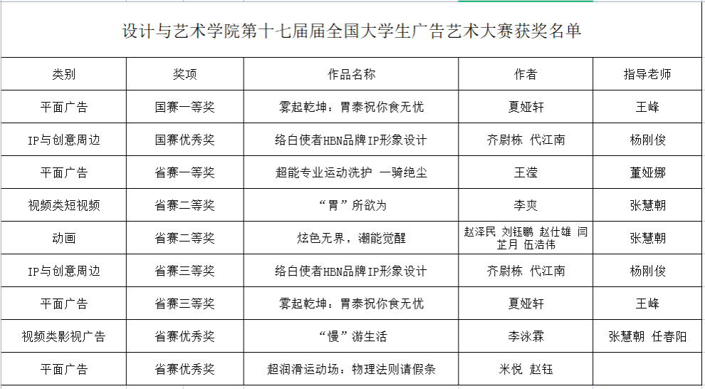 近日,365官网设计与艺术学院夏娅轩同学创作、王峰老师指导的平面广告作品在第17届全国大学生广告艺术大赛(简称“大广赛”)中,凭借出色的创意才华与扎实的专业能力,斩获国赛一等奖。其作品《雾起乾坤:胃泰祝你食无忧》以其深邃的文化内涵和精妙的视觉表达,在激烈竞争中脱颖而出,实现了365官网大广赛国赛一等奖“零的突破”。本届大赛中,设艺学子共荣获国赛一等奖1项,国赛优秀奖1项;省级一等奖1项、二等奖2项、三等奖2项、优...