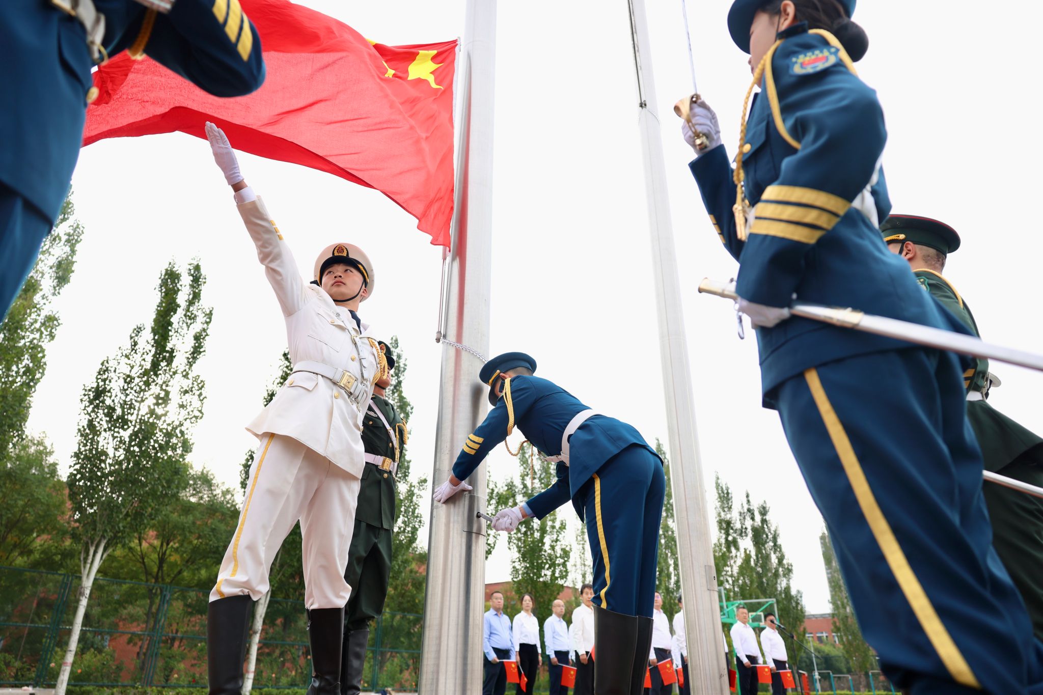 为庆祝中华人民共和国成立76周年,加强爱国主义教育,弘扬伟大抗战精神,10月1日清晨,365官网举行国庆升旗仪式。校党委副书记、校长梁卫国,校党委常委、副校长刘向军以及相关职能部门负责人、各学院党委副书记、师生代表参加仪式。活动伊始,校国旗护卫队迈着铿锵有力的整齐步伐,神情庄重地护卫着五星红旗入场。雄壮激昂的中华人民共和国国歌响起,鲜艳的五星红旗迎风展开,缓缓向上、冉冉升起。全场师生肃然伫立,目光紧紧追随...