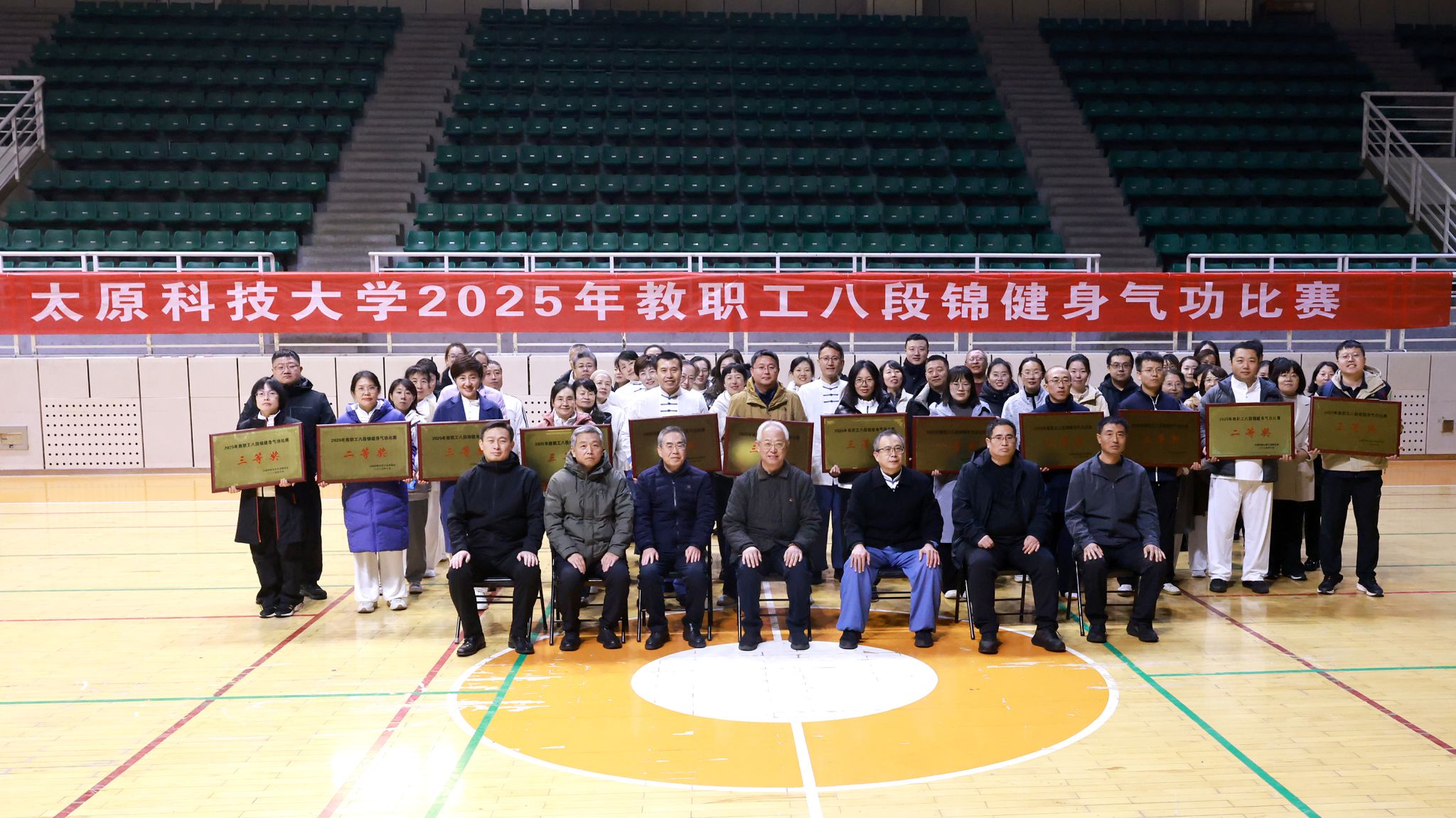 2025年10月22日下午,由校工会、校妇联主办,体育学院承办的bat365在线平台登录2025年教职工八段锦健身气功比赛在学校奋进体育馆举行,由各基层分工会组建的12支参赛队伍、250余名教职工满怀热情同场竞技。比赛现场气氛庄重而热烈,各代表队服装整齐、妆容精致,选手们个个精神饱满,动作整齐,配合默契,将八段锦“圆活连贯、松紧结合”的精髓展现得淋漓尽致,充分诠释了八段锦“刚柔并济展娇娆,怒目冲拳意气豪”的独特魅力,赢得了...