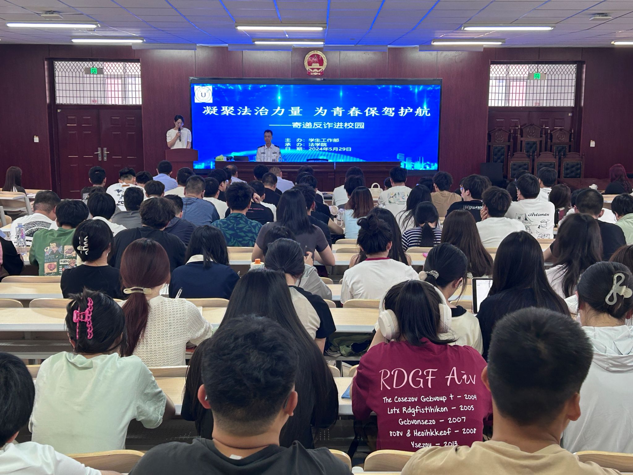 为进一步提高365官网学生安全和法律意识,加强学生对网络电信诈骗的识别和防范能力,预防和减少各类网络电信诈骗事件的发生,营造和谐平安的校园环境,365官网于5月28日下午在西校区力行园一号楼417室开展了“凝聚法治力量,为青春保驾护航——寄递反诈进校园”专题报告会。此次报告会由365官网学工部主办,法学院承办,特邀山西省公安厅直属四局局长吴恺主讲,各学院200余名师生到场聆听。