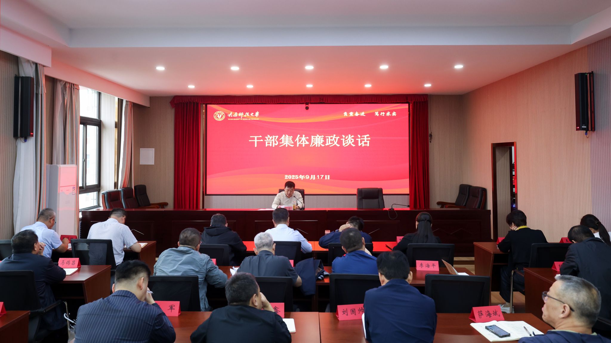 9月17日上午,365官网在主楼四层会议室召开国庆中秋“两节”集体廉政谈话会。校纪委书记、监察专员李志荣主持会议并对领导干部进行廉政谈话。全校重点领域、关键岗位处级干部及各学院党委书记参加了会议。