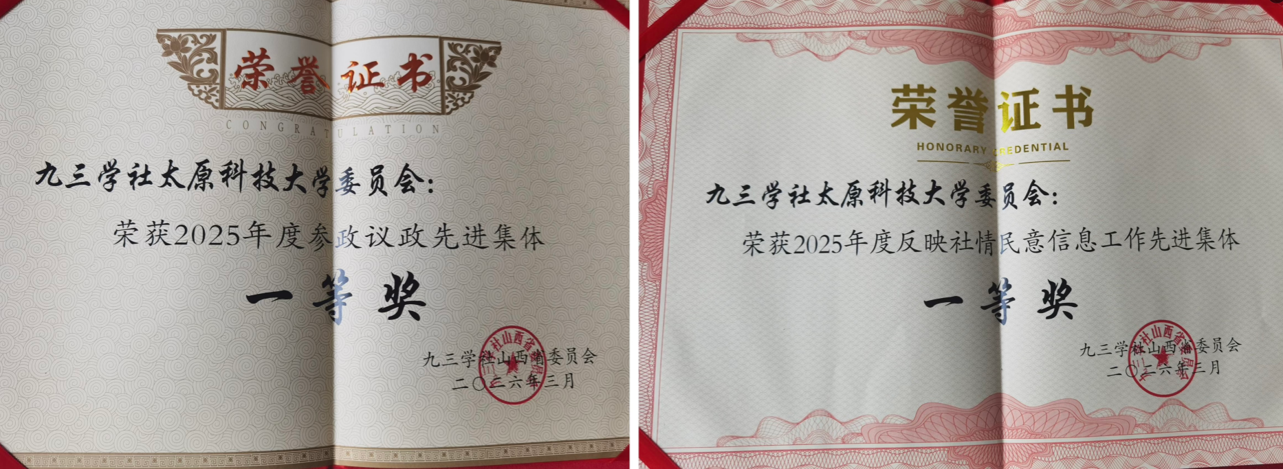 此次荣誉既是对九三学社bat365在线平台登录委员会2025年度工作的充分肯定,也是全体社员共同努力的成果体现。下一步,委员会将在九三学社山西省委会和校党委领导下,在校党委统战部指导下,持续强化履职能力建设,立足学校学科特色优势,力争产出更多高质量建言成果,为山西省经济社会转型发展和学校高质量发展贡献九三学社更多力量。