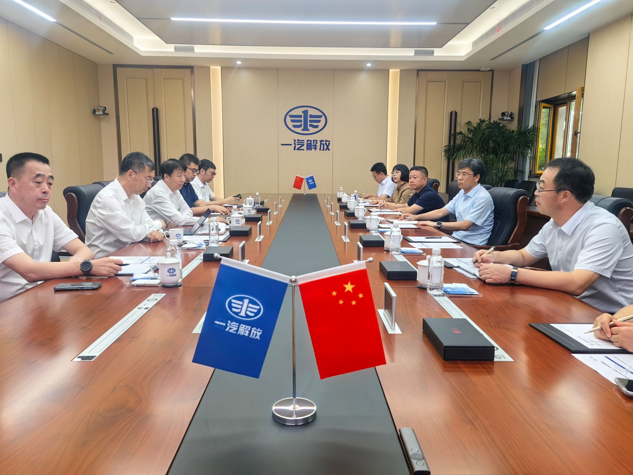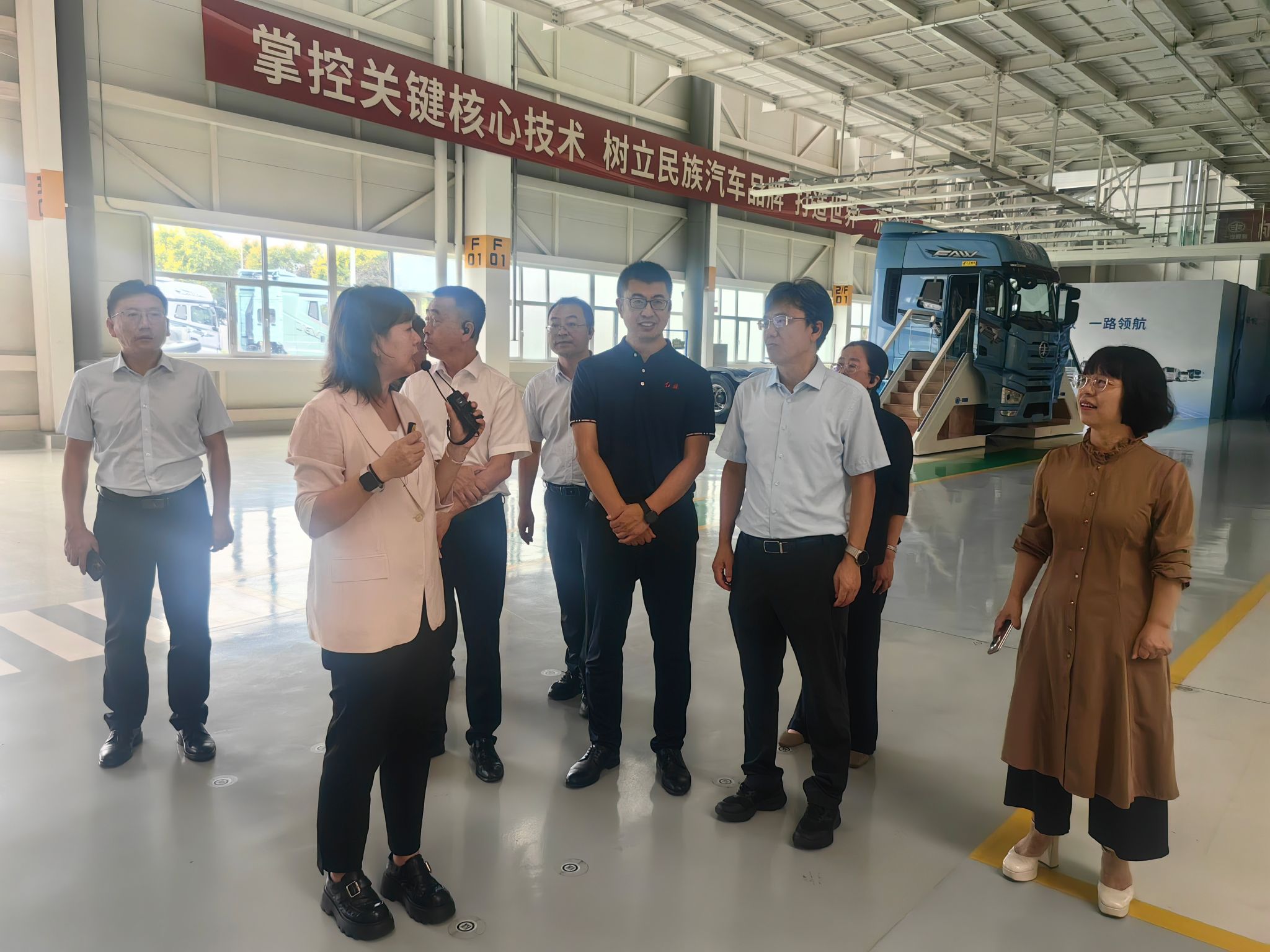 在一汽解放汽车有限公司,梁卫国一行先后参观了一汽红旗文化展馆和一汽解放整车装配车间,深入了解民族汽车工业发展历程和数智化技术赋能的汽车全流程智能制造。