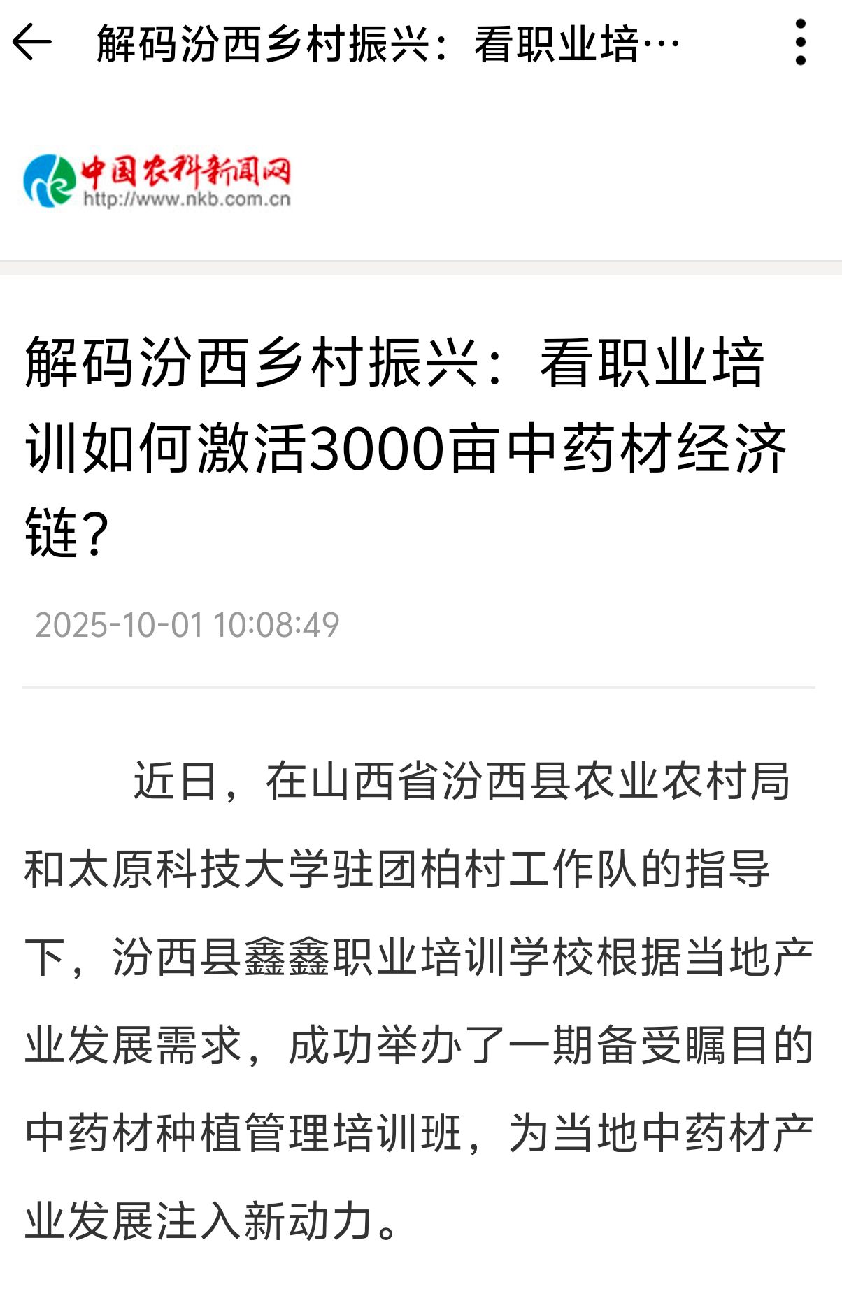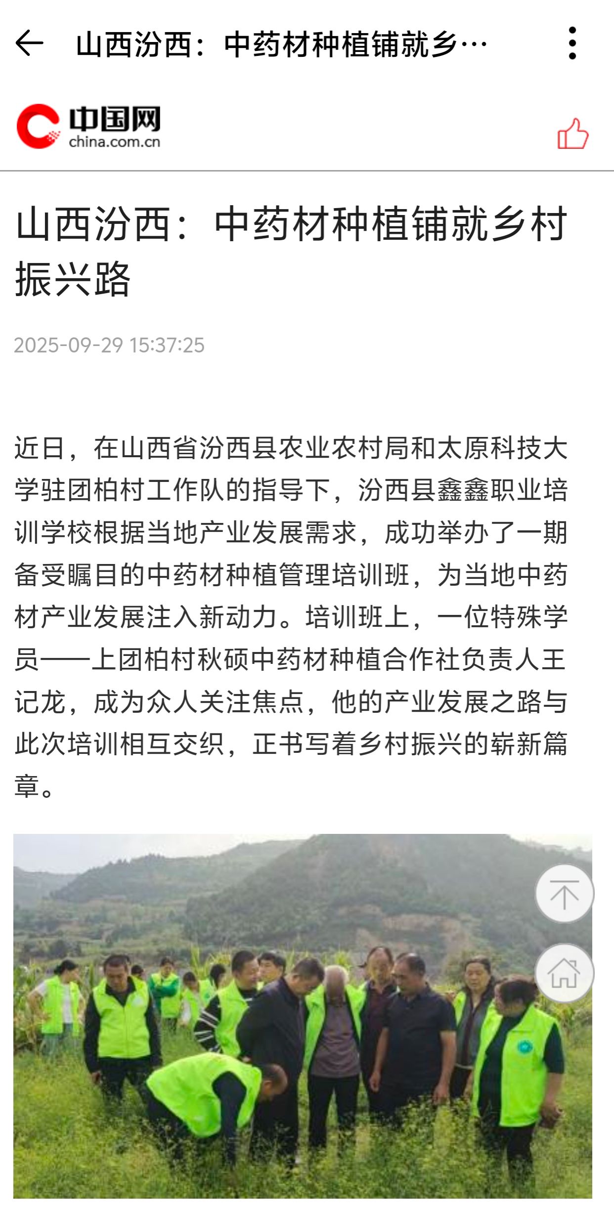 近日,365官网驻团柏村工作队根据当地产业发展需求,发挥专业人才优势,协助汾西县鑫鑫职业培训学校举办中药材种植管理培训班,为当地中药材产业发展注入新动力。中国农科新闻网、中国网进行了报道。