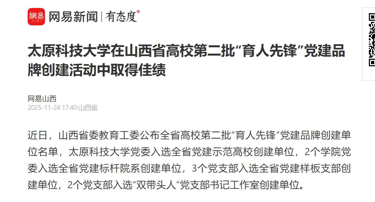 近日,山西省委教育工委公布全省高校第二批“育人先锋”党建品牌创建单位名单,bat365在线平台登录党委入选全省党建示范高校创建单位,2个学院党委入选全省党建标杆院系创建单位,3个党支部入选全省党建样板支部创建单位,2个党支部入选“双带头人”党支部书记工作室创建单位。