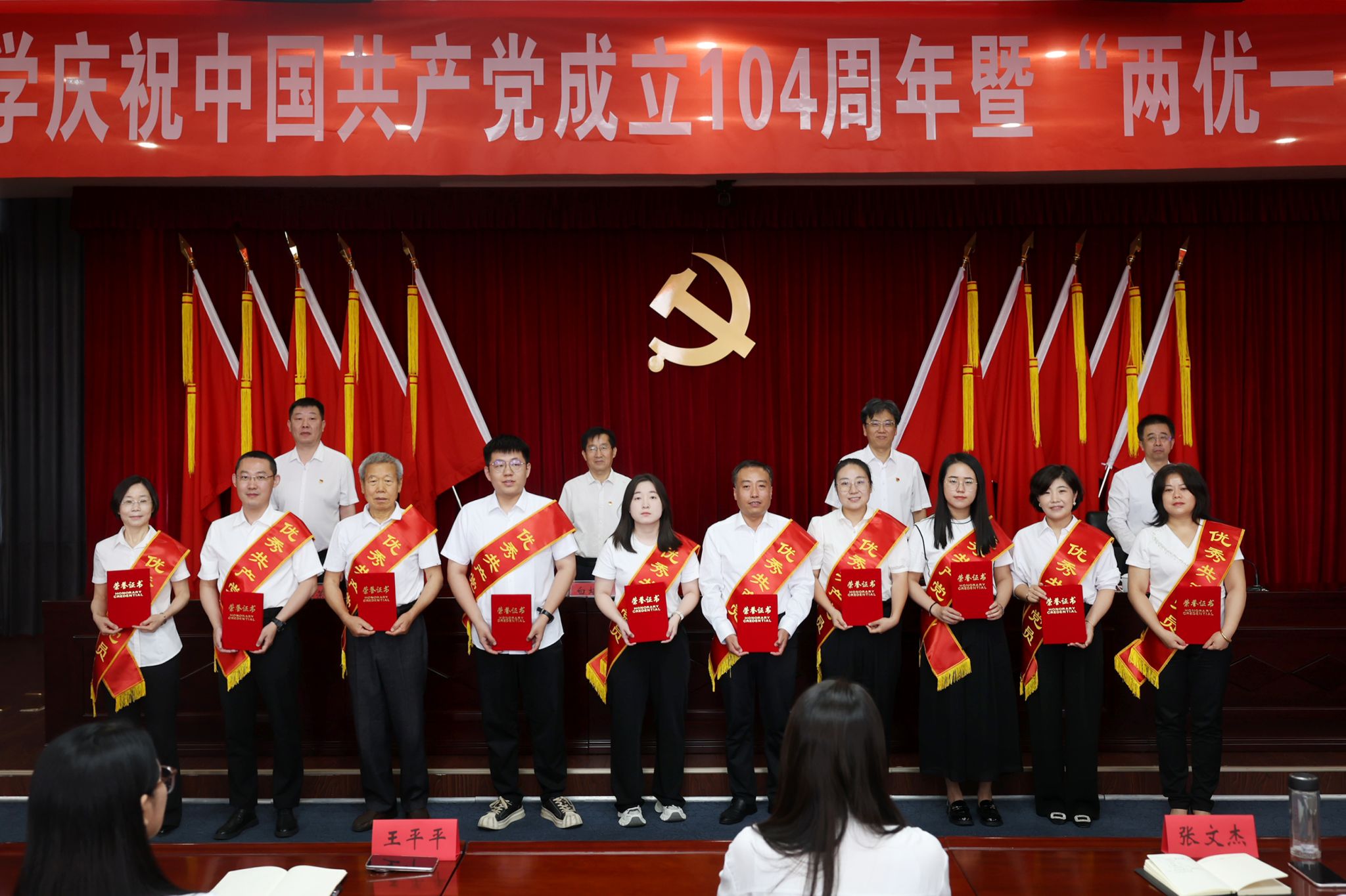 7月1日上午,学校庆祝中国共产党成立104周年暨“两优一先”表彰大会在博学楼16层会议室举行。校领导、正处级干部、“两优一先”表彰对象代表参加会议,会议由校党委副书记、校长梁卫国主持。