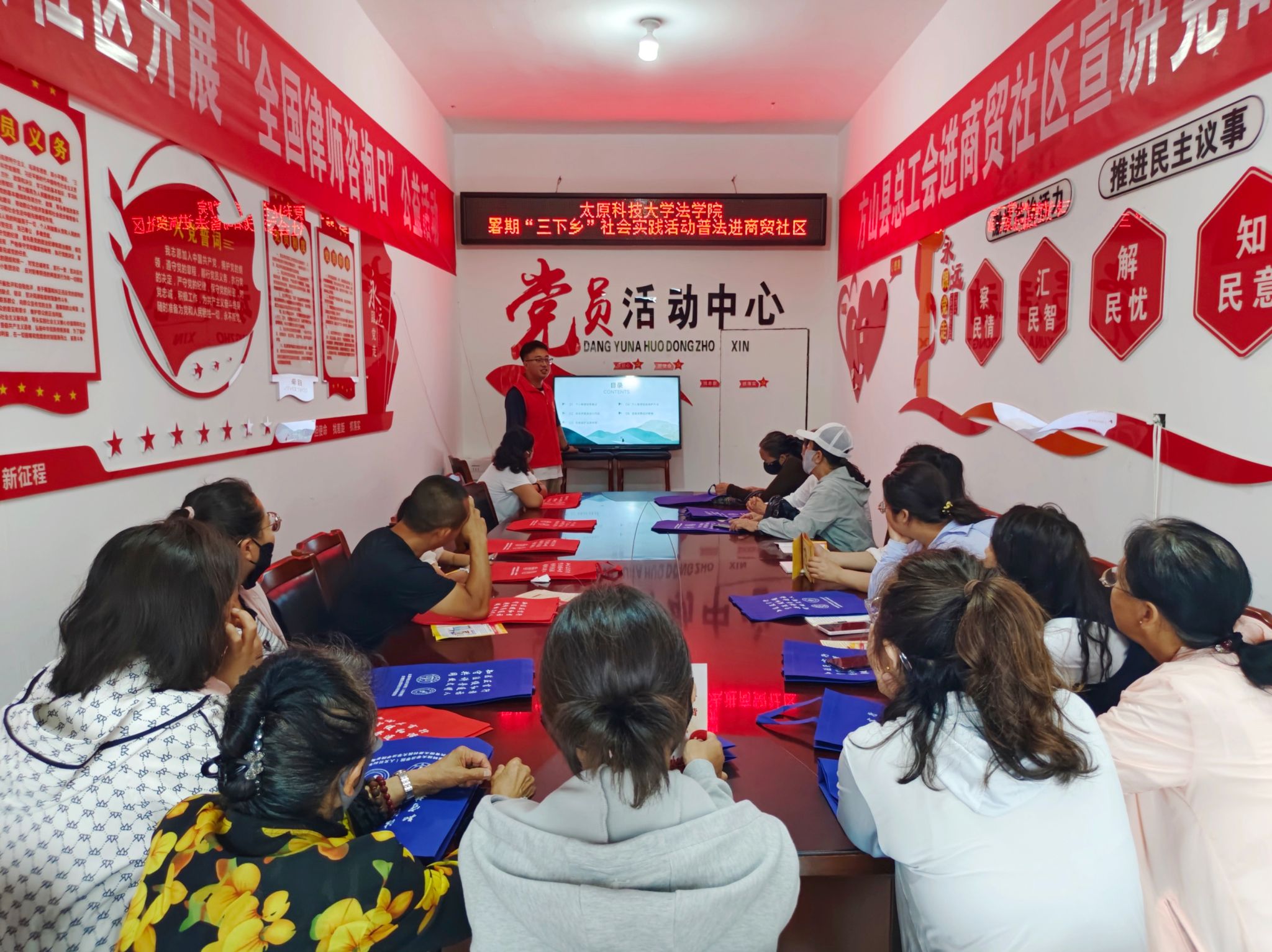 青春推普同语感悟文化魅力。各实践团队将优秀传统文化传播与文明乡风培育作为服务乡村振兴的重要着力点,深入基层一线,围绕产业发展、文化传承、语言推广等重点领域,依托问卷调查、实地走访等多种形式,弘扬时代新风,推动实践育人与乡村建设同频共振,助力构建文明乡村新风貌。计算机科学与技术学院“E 言益行 昔阳推普”实践队赴昔阳县开展“推普助力乡村振兴”暑期社会实践活动,发挥专业优势,通过科技赋能、摸排调研、分层推普、“推普+电商直播情景模拟”“推普+乡村旅游接待对话”、红色研学等一系列活动,以语言为纽带,将推广普通话与红色文化、产业发展融合,也让实践队员们在行动中深化对乡村振兴发展成就的理解。法学院“青春‘律’动·‘语’你同行”实践队深入吕梁市方山县,通过调查问卷、多维度访谈、实地观察、资料收集等方式,践行专业使命,将法学工作的严谨与社会工作的温情深度融合,推动法治精神与人文关怀在基层协同共进,为法治中国建设注入青春活力。
