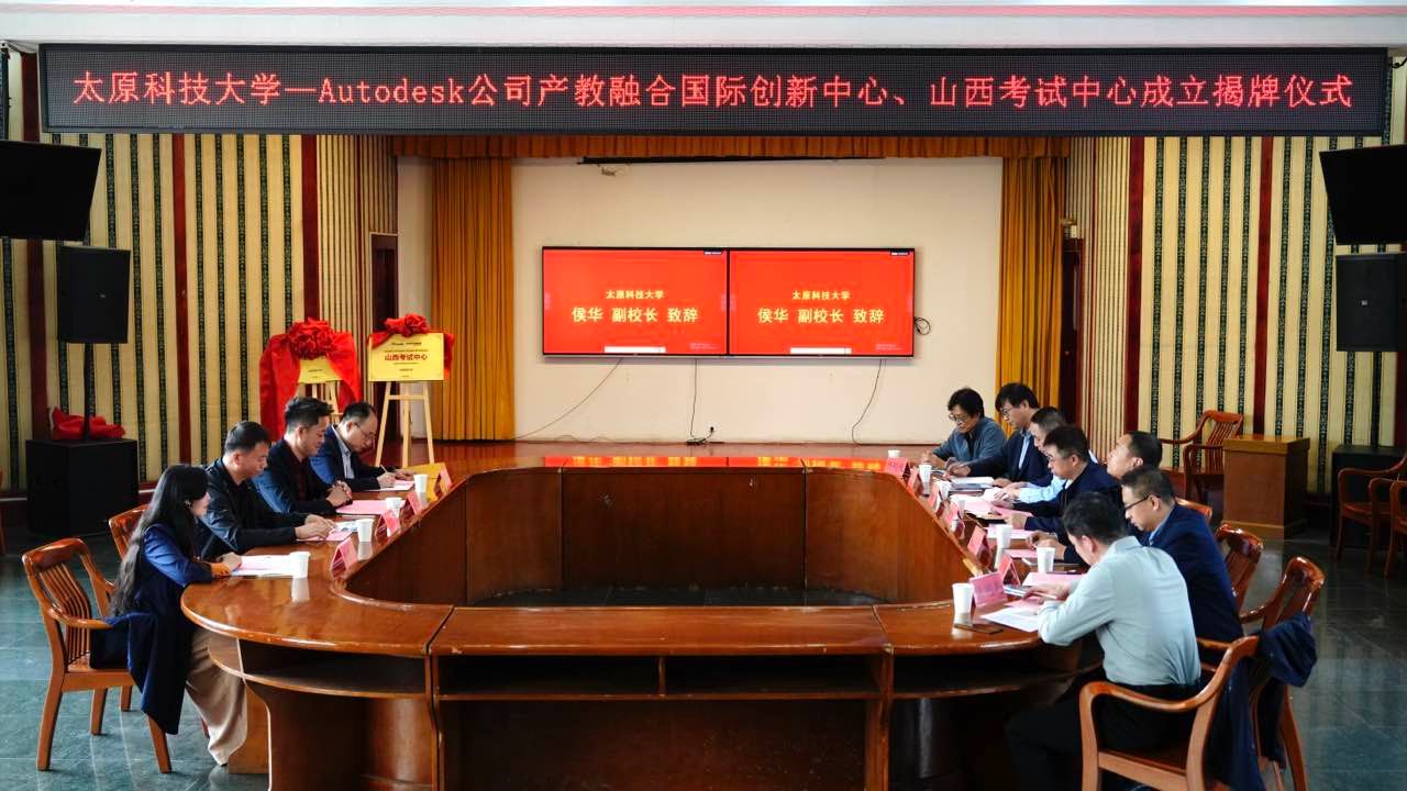 Autodesk中国教育管理中心营销总监及山西管理中心负责人,365官网产教融合中心、教务部、机械工程学院、材料科学与工程学院、设计与艺术学院等相关部门和学院负责人参加了揭牌仪式。