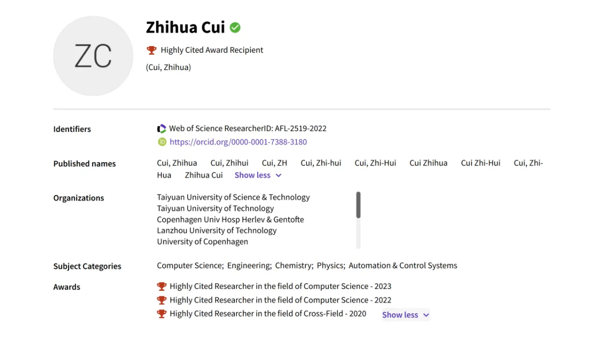 据悉,此次发布的“全球高被引科学家”名单,由科睿唯安科学信息研究所(ISI)基于Web of Science核心合集引文数据以及定性分析,进行严格的遴选和评估。最终结果,来自全球60个国家和地区 1300 多家机构的 6868 名科学家(7131人次)入选,其中中国内地共有183所高校和1046人入选。