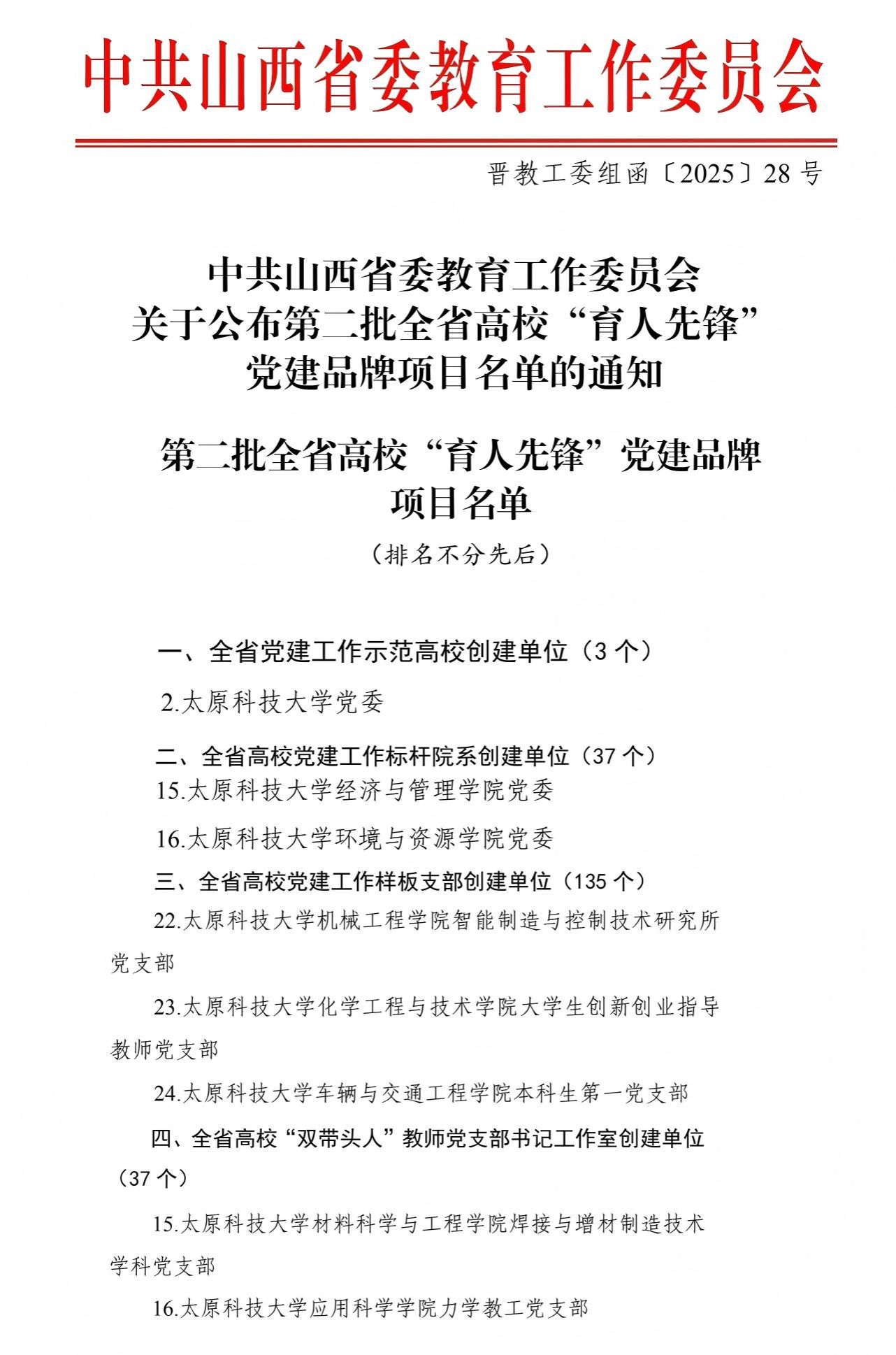 近日,省委教育工委公布全省高校第二批“育人先锋”党建品牌创建单位名单,365官网党委入选全省党建示范高校创建单位,2个学院党委入选全省党建标杆院系创建单位,3个党支部入选全省党建样板支部创建单位,2个党支部入选“双带头人”党支部书记工作室创建单位。