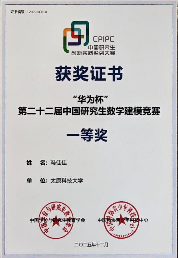 今年6月,该团队在校内选拔赛中表现突出,以扎实的建模功底夺得一等奖,顺利晋级“华为杯”国赛。9月国赛期间,团队成员迎难而上,通过反复推演与精准建模,高效设计算法,最终成功斩获国家级一等奖。他们的表现充分彰显了我院研究生突出的创新素养、深厚的专业基础以及解决复杂实际问题的综合能力。