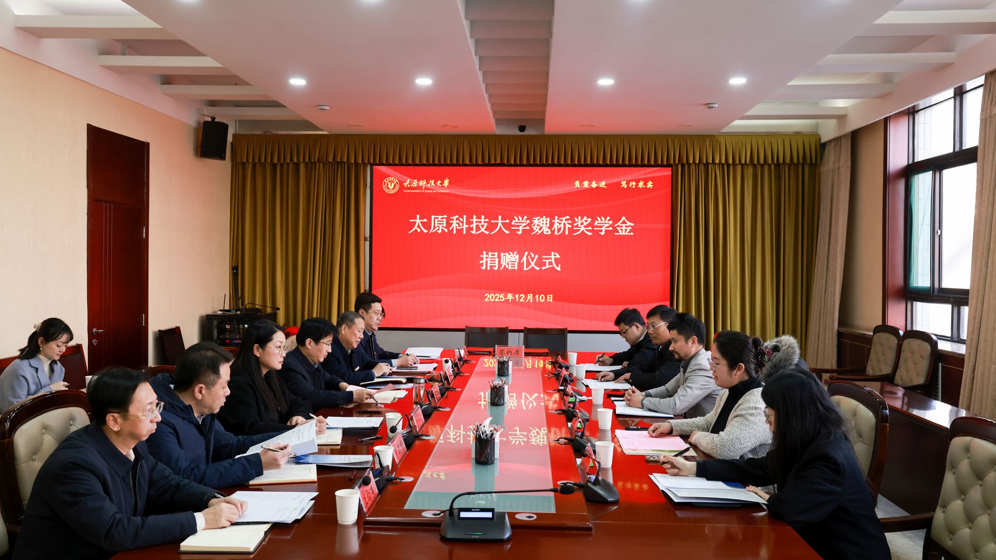 学校相关部门负责人、魏桥创业集团、士平公益基金会相关负责人参加了捐赠仪式。