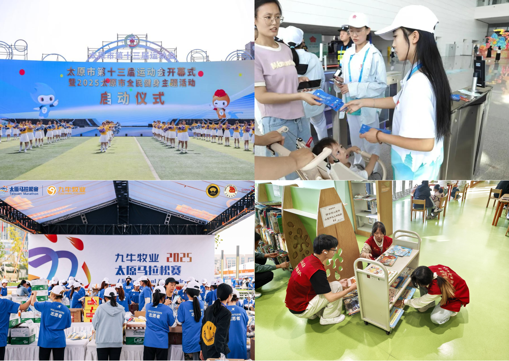 校外践诺,彰显青年责任担当。在大型盛会中,科大学子是亮眼的“青春名片”:450名志愿者护航太原马拉松,用坚守与热忱为赛事添彩;16名青年服务山西文化产业博览交易会,以专业素养助力文化强省;在太原市运动会赛场,百余名志愿者们穿梭忙碌,用高效服务保障赛事顺利推进。在馆室院所,科大志愿者身影是温暖的“文化纽带”:省图书馆里,“你是我的眼”活动为视障群体点亮求知之路;省博物院、晋商博物院中,导览讲解、触摸历史等服务,让文化传承更有温度。在社区街巷,志愿者化身贴心“便民使者”,深入和平街道开展卫生清理、政策宣讲,用点滴行动助力基层治理,让暖流浸润民心。