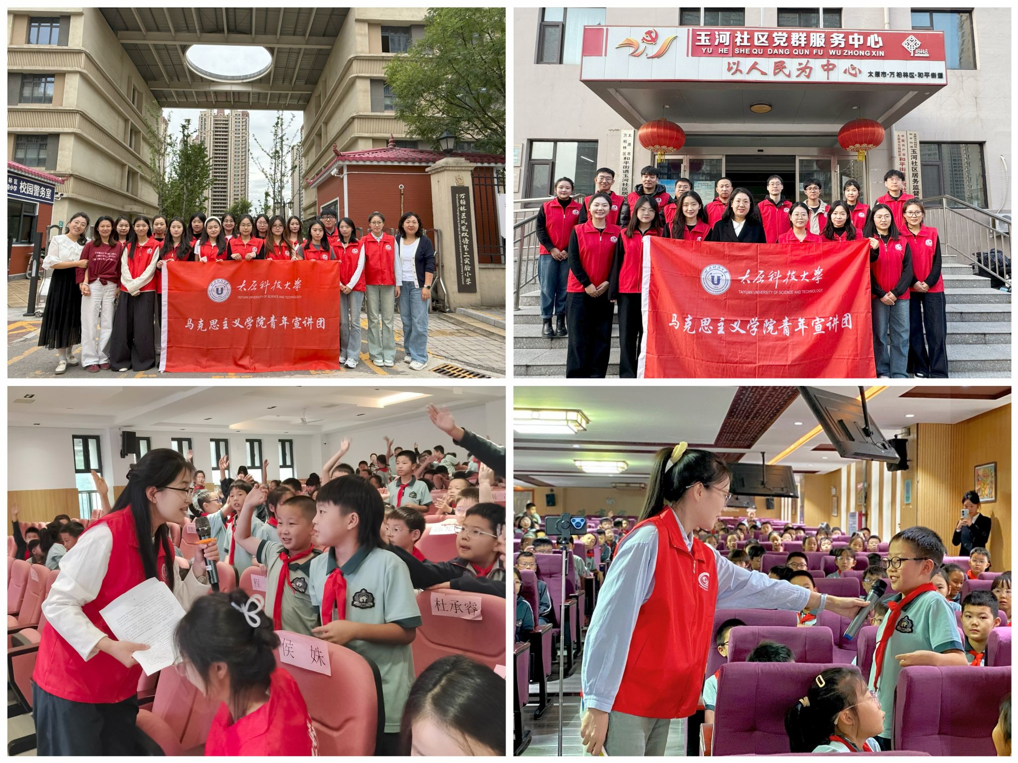 宣讲团锚定“精准化供给、多元化表达、全场景覆盖”核心目标,围绕“如何讲得准、讲得活、讲得远”持续探索。立足不同受众认知特点与需求,精心打磨五大专题宣讲“菜单”,创新推行“点单+接单”闭环服务模式,针对高校学生通过专题讲授、互动研讨等形式深化理论理解,面向小学生则以红歌传唱、互动闯关等寓教于乐的方式播撒红色火种,实现“按需施教、精准滴灌”。宣讲中注重话语转化,善用“网言网语”和“理论+案例”组合,搭配 PPT、短视频等可视化手段,让抽象理论变得可感可知、入脑入心。同时,构建“线下讲台+线上平台”融合传播体系,通过学校及学院官网、微信公众号等新媒体载体推送系列图文专题,延伸宣讲时空维度,推动党的创新理论以更生动、更鲜活的姿态浸润青年心田,形成常态长效的传播机制。