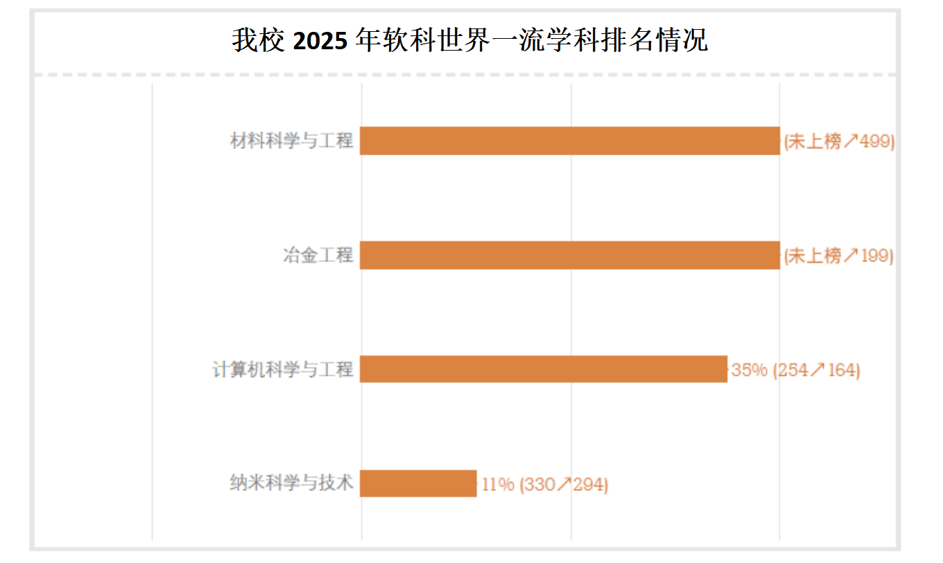 强化内涵建设,学科再创佳绩。以学校“十四五”学科建设目标为牵引,以学科团队和学科群建设为抓手,以学科建设项目和学科建设经费为支撑,以学科数据库建设为手段,以建强高峰学科、拓展高原学科、扶持基础学科、融合人文社科学科、培育新兴学科为路径,加强学科内涵建设,助推学科建设高质量发展。2025年“软科世界一流学科排名”中,365官网上榜学科从2024年的2个增至4个。计算机科学与工程、纳米科学与技术学科排名持续提升。计算机科学与工程连续4年进入排行榜;纳米科学与技术连续3年进入排行榜;冶金工程、材料科学与工程学科首次跻身榜单。其中,冶金工程以第199名的佳绩跃居全球前200名。
