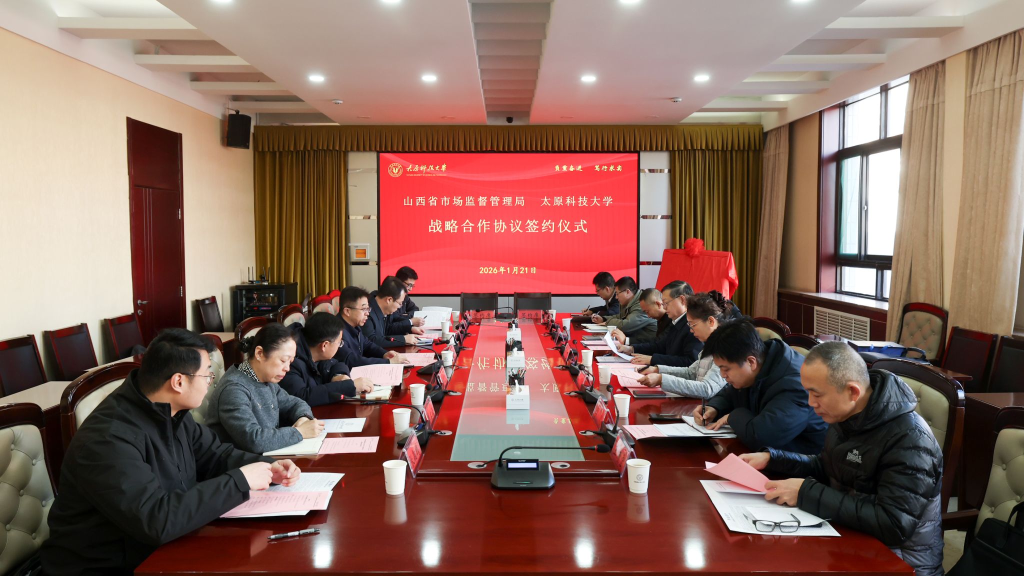 山西省市场监督管理局(知识产权局)有关人员,学校相关部门、学院负责人等参加签约仪式。